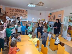 Preșcolarii grupei mare A de la Grădinița cu P.N.” Sf.Nicolae”, au desfășurat în săptămâna 13-19 noiembrie activitatea ”Pace pentru o planetă a păcii”, în cadrul Global Week 2023. Mesagerul păcii a ajuns la colegii din grădiniță, la elevii Școlii Gimnaziale ”Sfântul Nicolae”, Primărie, Poliția Locală, Biblioteca Comunală ,Poștă și în centrul localității.