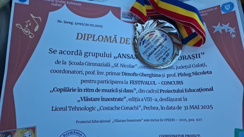 Festivalul – Concurs “Copilărie în ritm de muzică și dans”, ediția a VIII-a, din cadrul Proiectului Educațional ”Vlăstare înzestrate”, proiect inclus în CPEERI – 2025, poz. 927. „Vânătorașii” din nou pe podium! Bravo vouă, copii minunați și talentați, care aduceți bucurie în inimele noastre și ale părinților voștri! Felicitări celor două doamne profesor, Pîrlog Nicoleta și Dimofte Gherghina Gina, care vă îndrumă pașii!