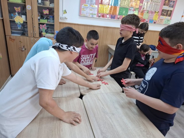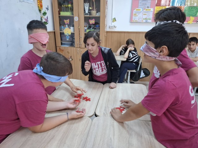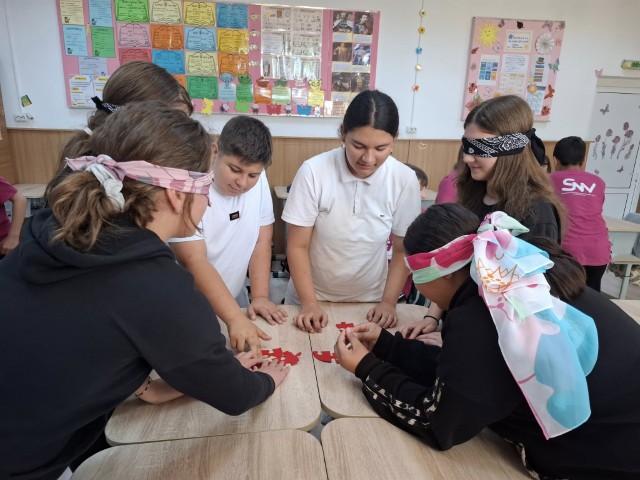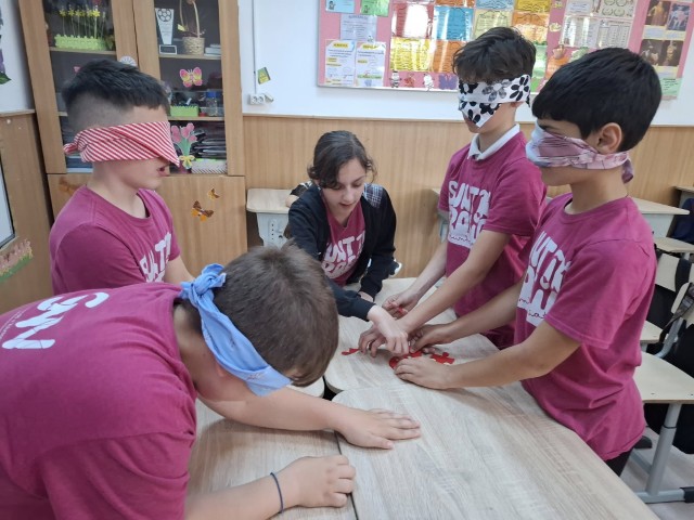 Activitatea de a rezolva puzze-ul a necesitat o bună comunicare între cei care sunt legați la ochi și cel care i-a coordoonat. Elevii clasei a V-a A, de la Școala Gimnazială „Sfântul Nicolae”, loc. Vânători, jud. Galați au învățat cum este să depindă de cei din jur pentru a înțelege și a depăși provocările legate de percepția limitată. Scopul educațional al acestei activități a fost: Dezvoltarea empatiei față de persoanele cu deficiențe de vedere. Înțelegerea provocărilor zilnice cu care se confruntă persoanele nevăzătoare. Îmbunătățirea abilităților de colaborare și comunicare eficientă.